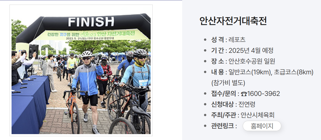 - 참가 신청 링크: 안산 자전거대축전 공식 http://www.ansansports.org/