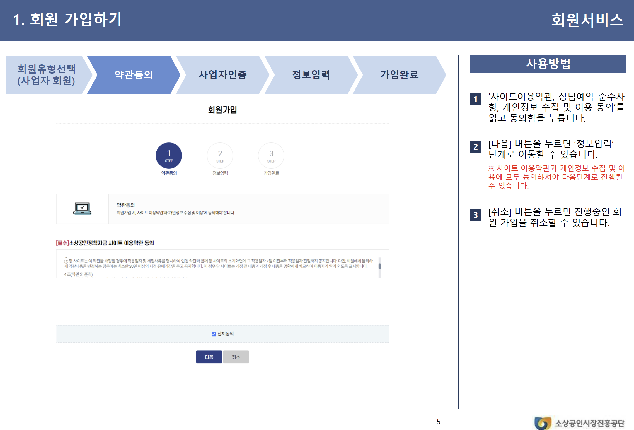 - 소상공인지원센터 방문 → 상담 후 서류 제출
