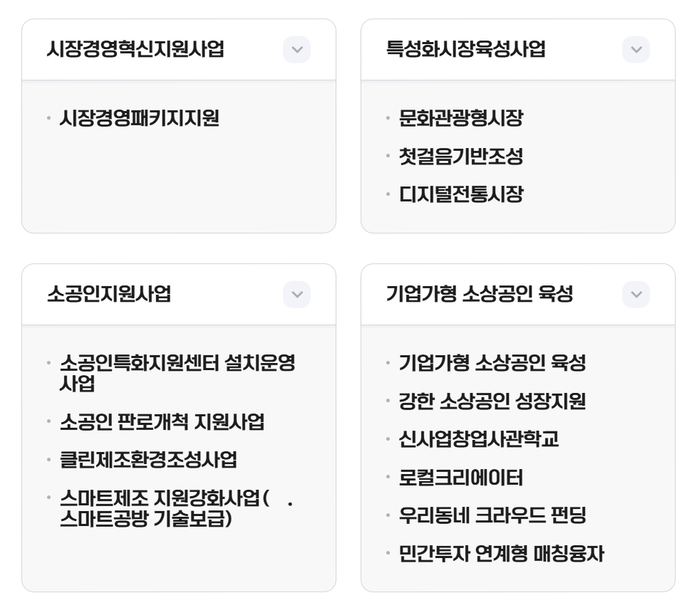 - 바우처 지원: 마케팅, 컨설팅, 판로 개척 지원