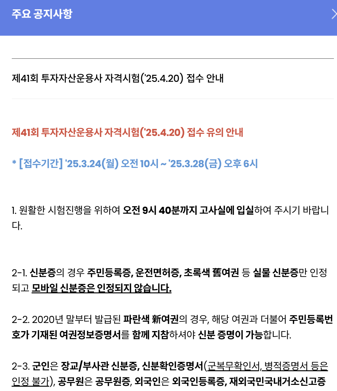 - 시험 접수 사이트: 한국금융투자협회 금융투자교육원 🔗 공식 홈페이지