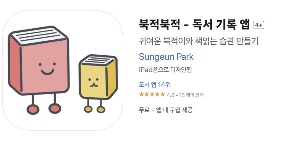 ✔ 북적북적 – 독서 기록 및 감상 공유 가능 https://apps.apple.com/kr/app/%EB%B6%81%EC%A0%81%EB%B6%81%EC%A0%81-%EB%8F%85%EC%84%9C-%EA%B8%B0%EB%A1%9D-%EC%95%B1/id1472538417