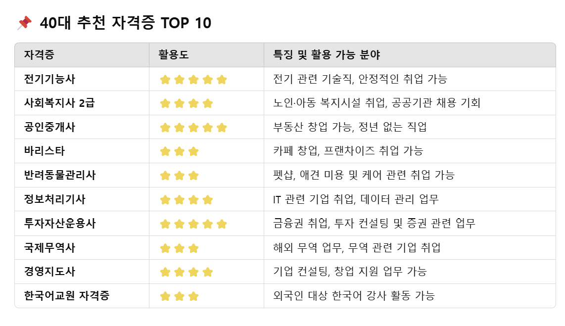 40대가 자격증을 선택할 때는 단순한 유행이 아니라 실제 활용 가능성을 중점적으로 봐야 합니다.