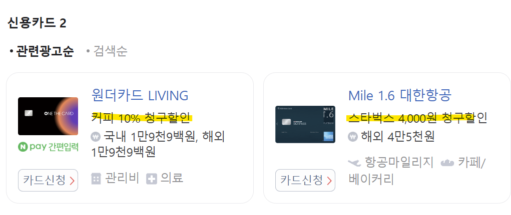 | 카드명 | 커피 혜택 | 연회비 | |