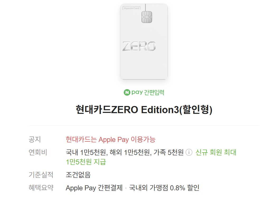 | 현대카드 Zero(할인형) | 스타벅스·이디야 10% 할인 | 1.5만 원 | |