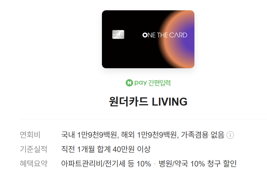 | 하나 원더카드 LIVING | 커피 브랜드 10% 청구 할인 | 1.9만 원 | |