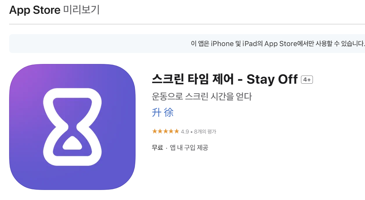 스크린 타임 제어 - Stay off (Appstore)