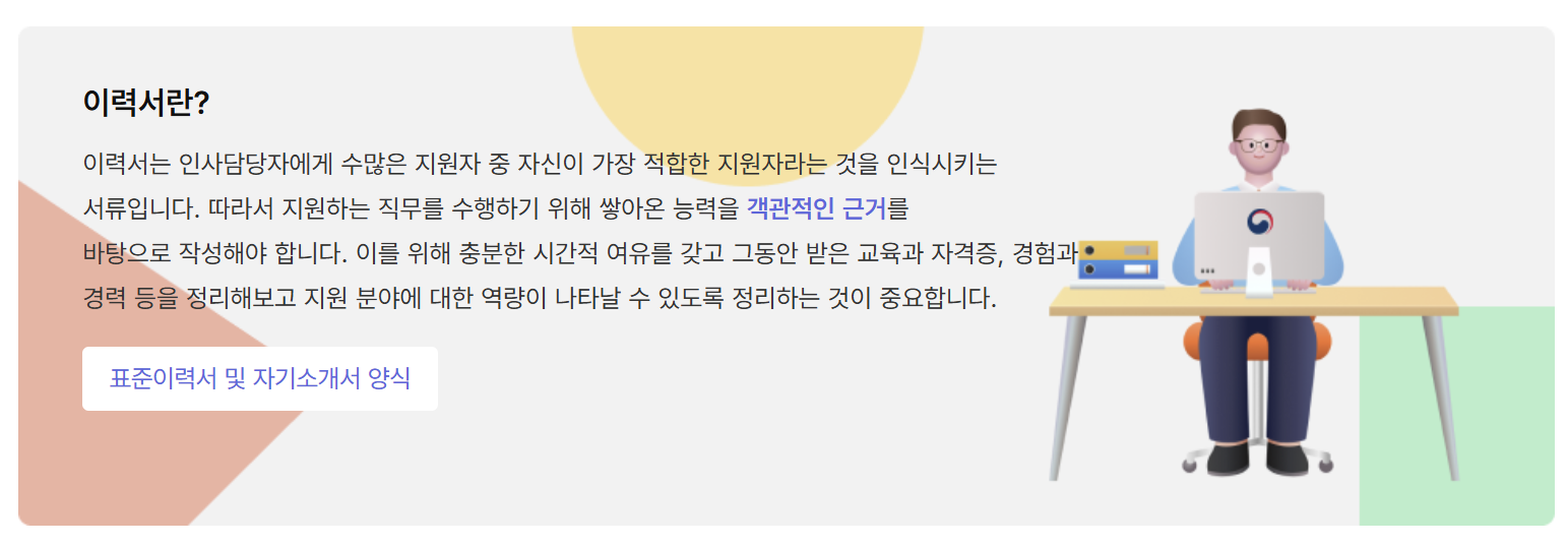 워크넷 표준이력서 및 자기소개서 다운로드 받기 (출처:워크넷)