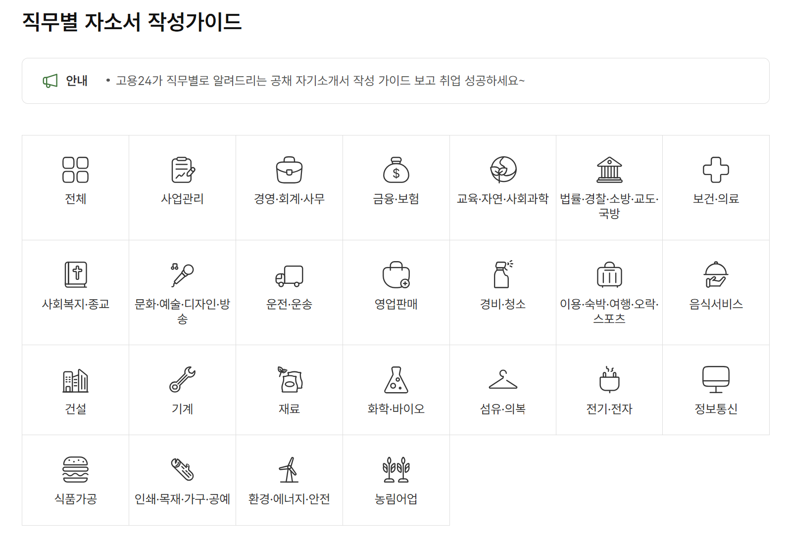 | 고용노동부 워크넷 | 직무별 자소서 작성가이드 | 워크넷 작성가이드 |